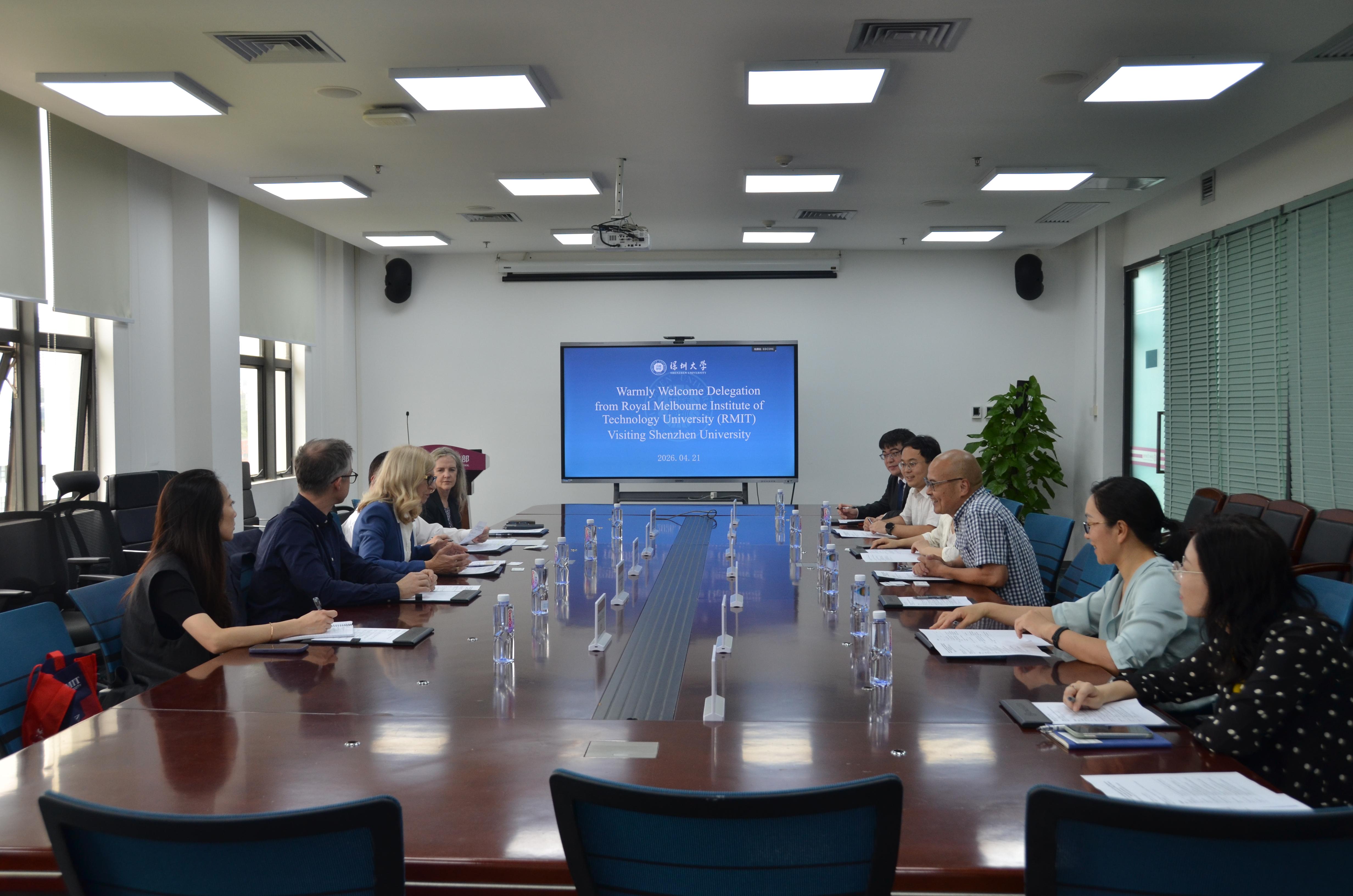 On April 21, 2026, a delegation led by Catherine Itsiopoulos, Deputy Vice-Chancellor of the Royal Melbourne Institute of Technology (RMIT), visited Shenzhen University. The two institutions signed a Memorandum of Understanding (MOU) at the Shouzheng Building on Shenzhen University's Lihu Campus, followed by in-depth discussions on future areas of cooperation. Both parties reached an agreement to jointly apply for a Ministry of Education's Sino-foreign cooperative education program in engineering disciplines. Li Yonghua, Vice President of Shenzhen University, attended the event.
